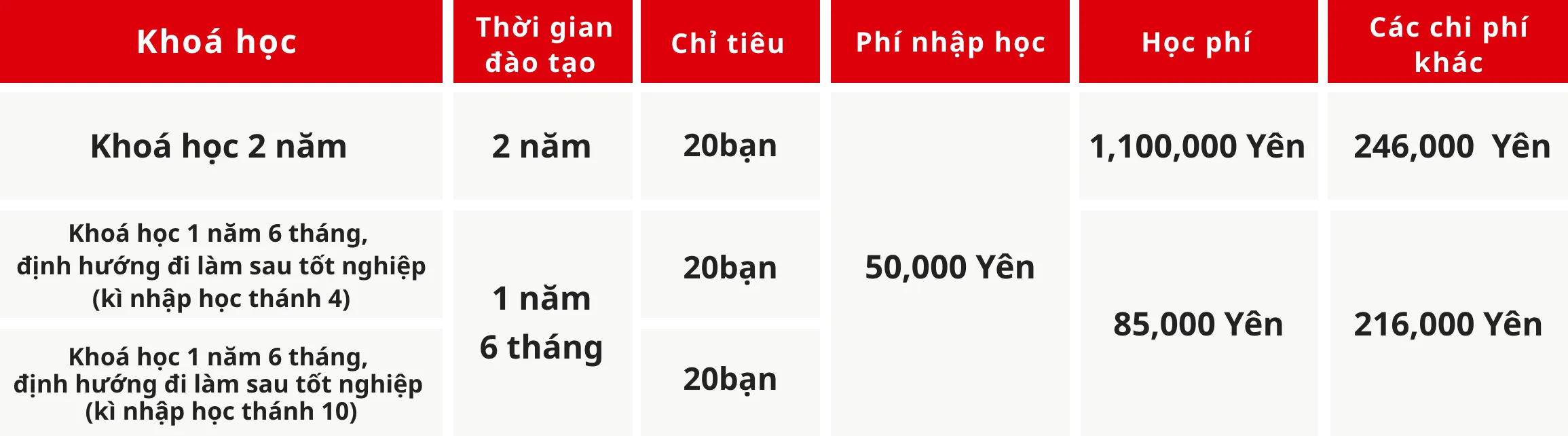 Học phí (năm đầu): Khoa IT Literacy 700,000 yên